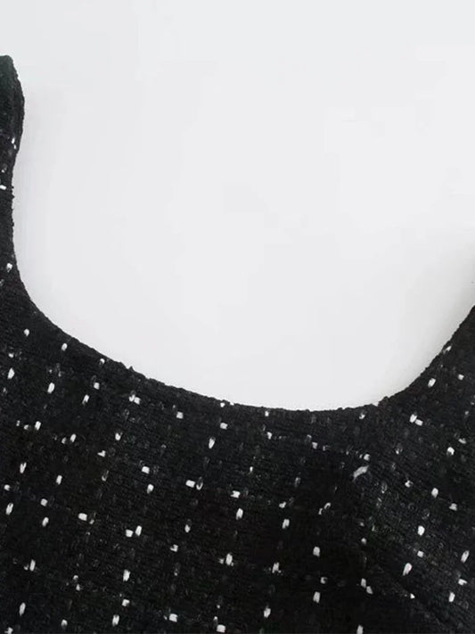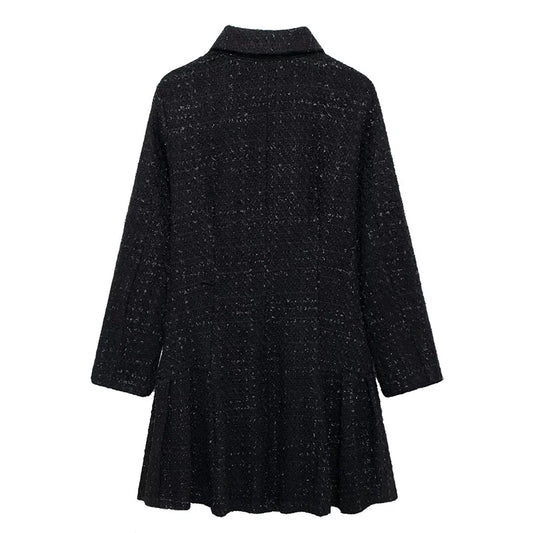 Black Tweed Pearl-Embellished Dress