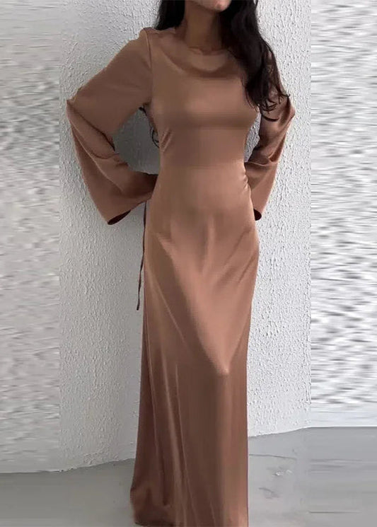 Back Lace-Up Maxi Dress with Flared Sleeves