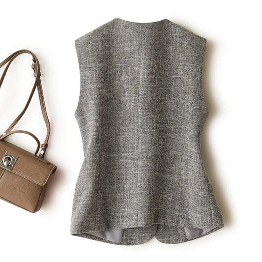 Gray V-Neck Short Vest Jacket
