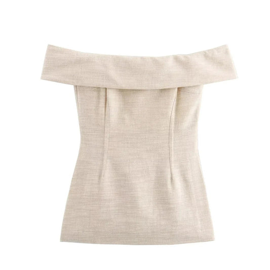 Sienna Beige Off-Shoulder Side-Slit Top