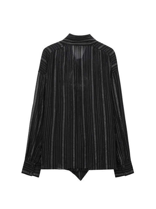 Semi-Sheer Tie-Neck Blouse