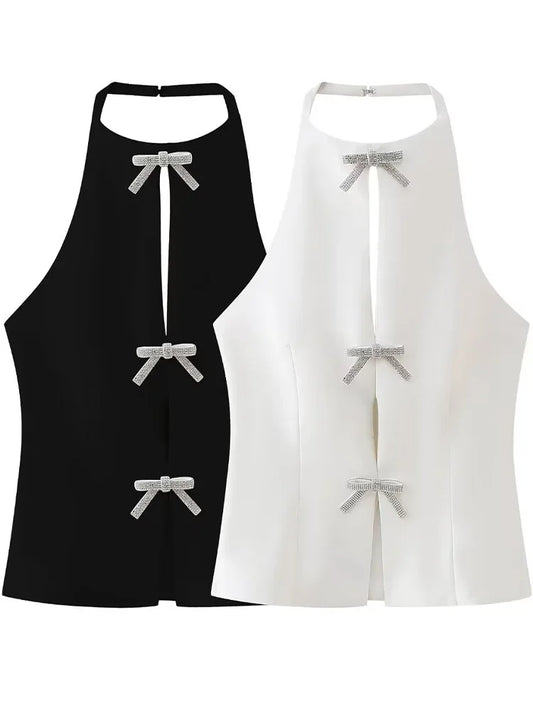 Halter Neck Top with Diamond Bow